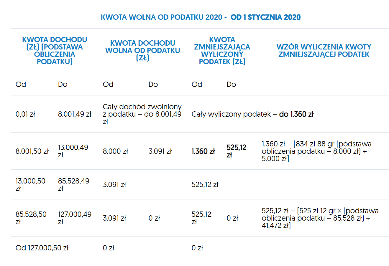 Zmiana kwoty wolnej od podatku od 1 stycznia 2020 roku
